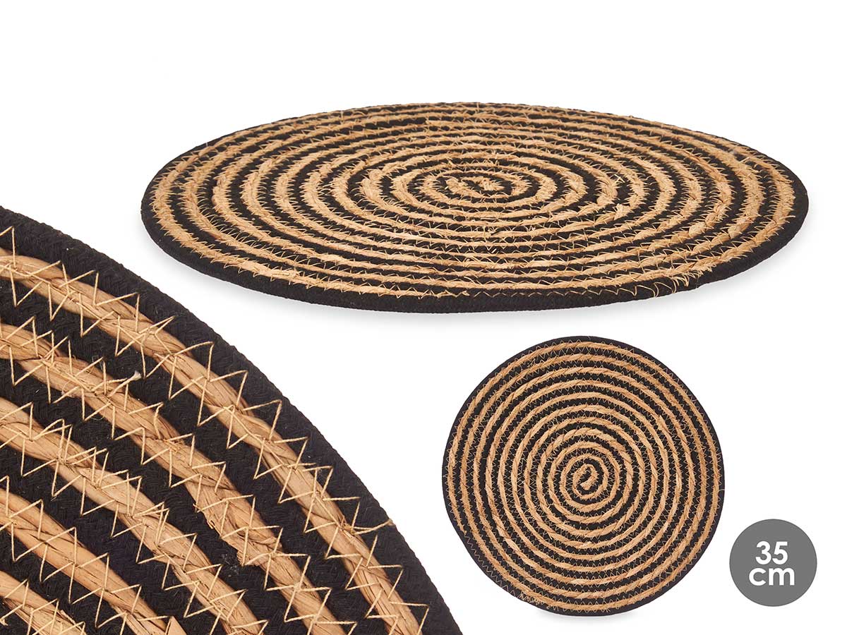 • Salva mantel de esparto centro tela negro