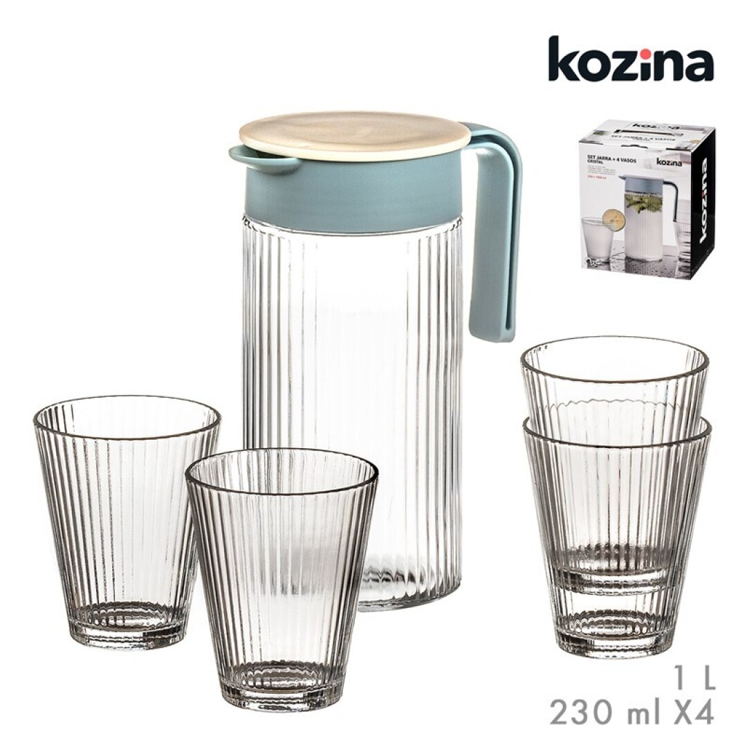 Set jarra 1 L + 4 Vasos cristal rayas