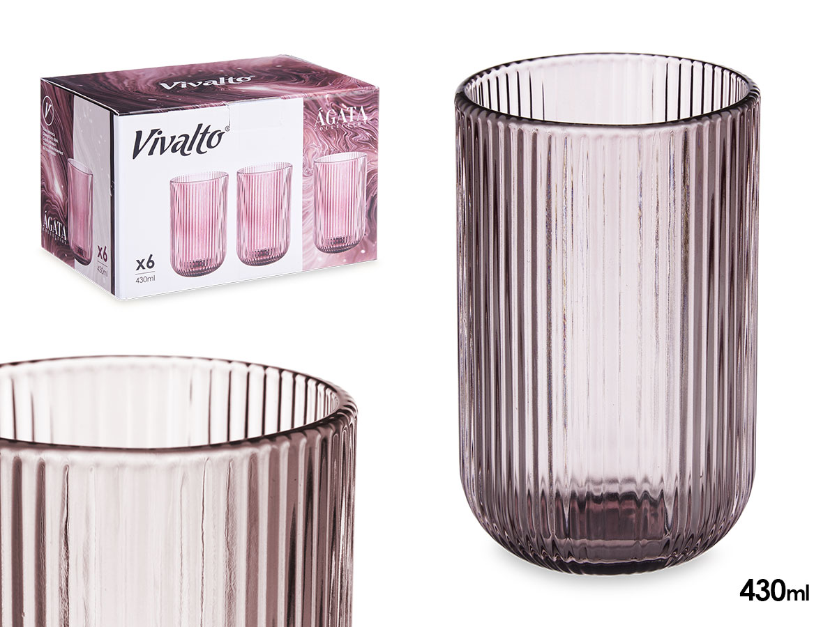 • Vaso alto rosa rayas 430ml