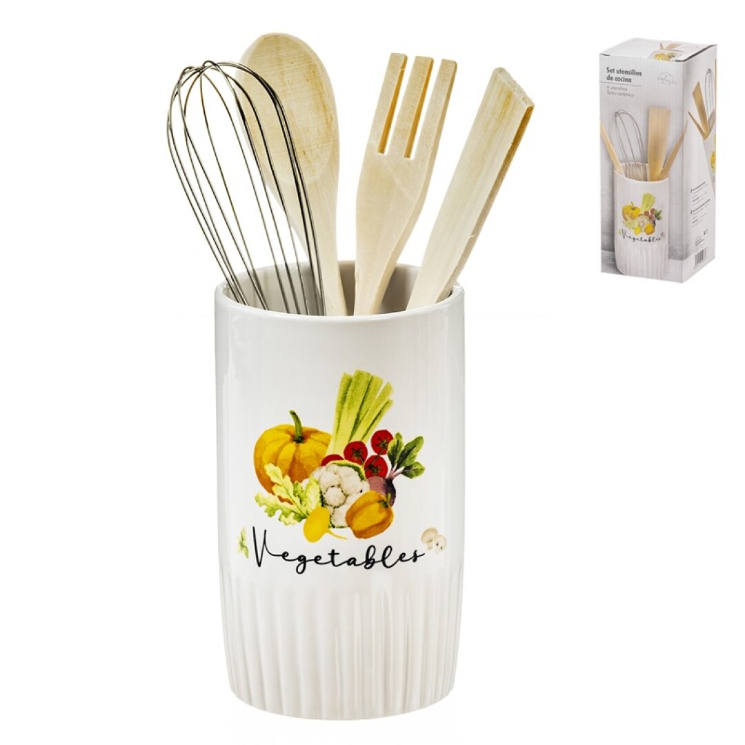 Portautensilios cerámica + utensilios vegetables