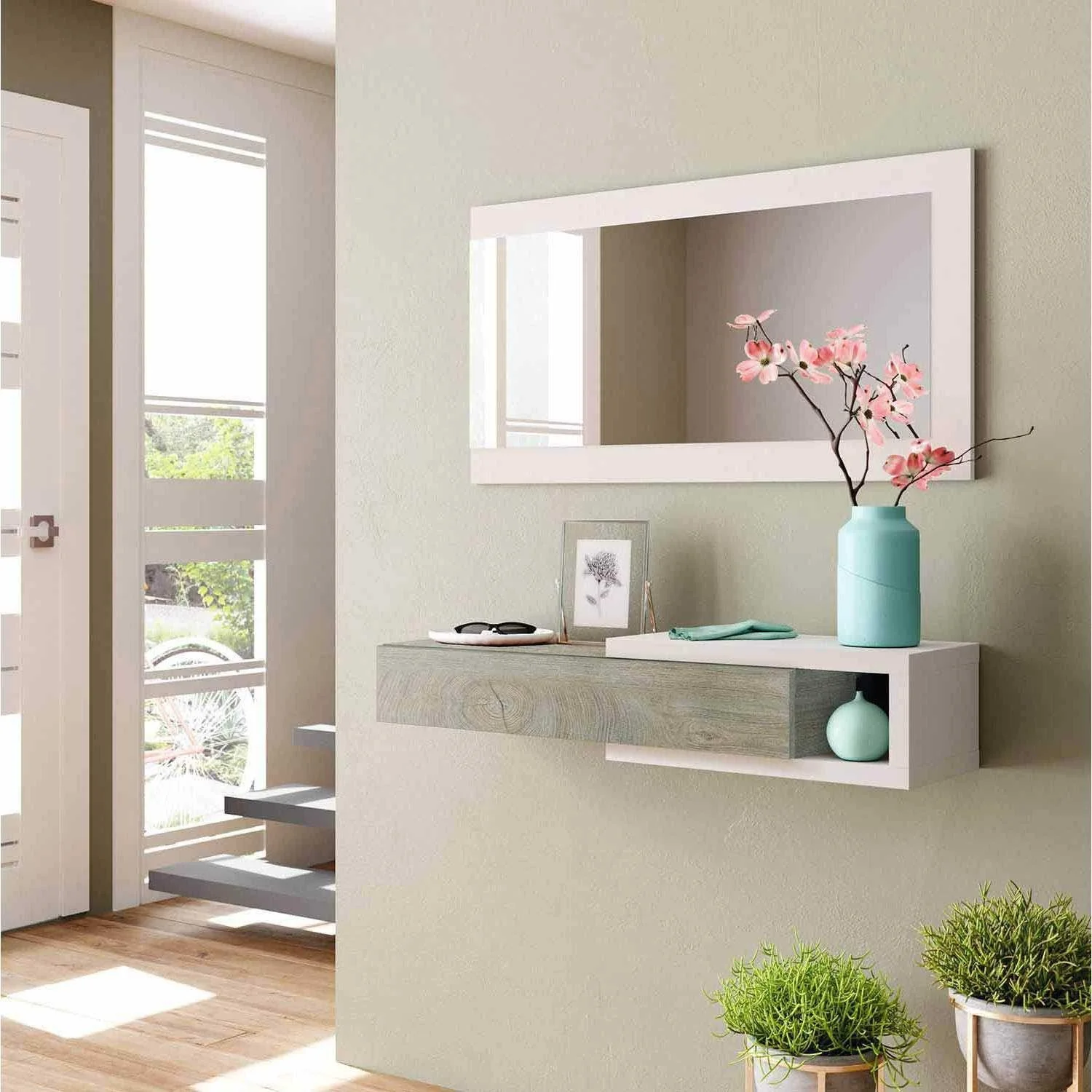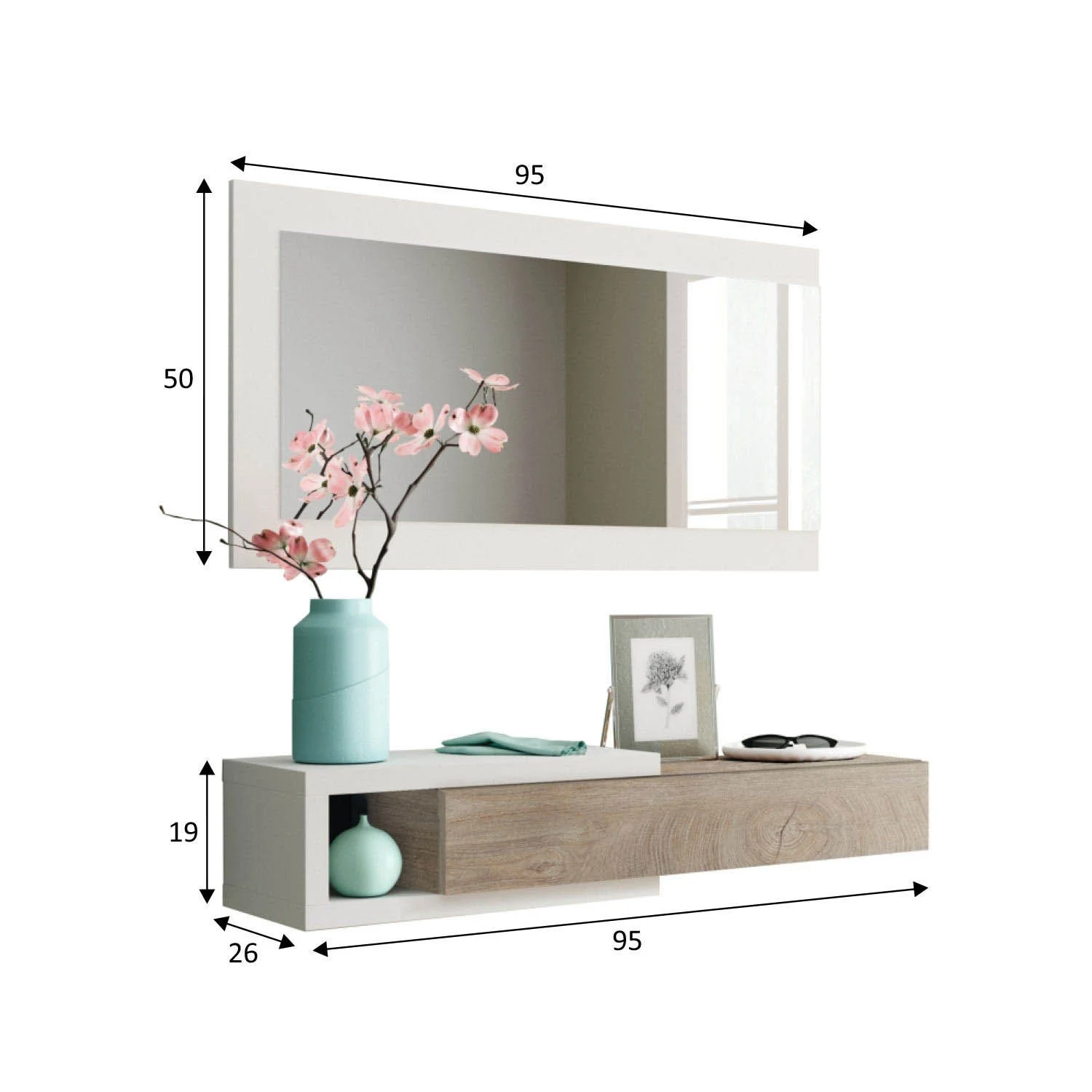 Recibidor + Espejo Noon Blanco ártico / Roble Alaska
