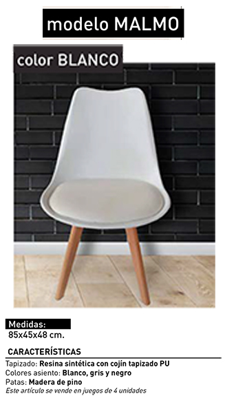 Juego de 4 Sillas Tapizadas Patas de Madera Mod. Malmo Blanco