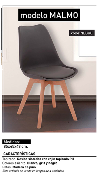 Juego de 4 Sillas Tapizadas Patas de Madera Mod. Malmo Negro