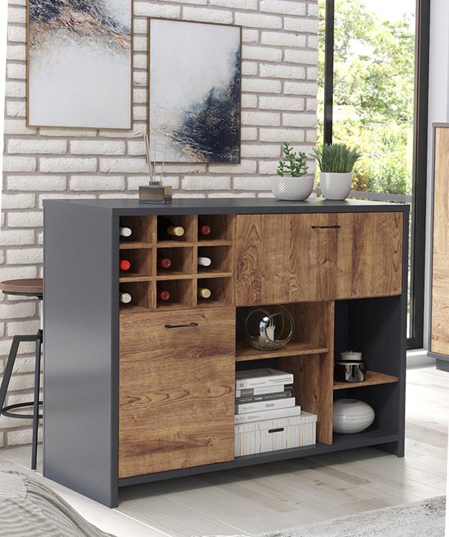 - El buffet con vinoteca es ideal y es que con 125 cm de ancho podrás invitar a quien tú quieras y relajarte junto a la mejor compañía.