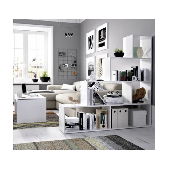 Estantería alta multifuncional en escalones Blanco Brillo - Imagen 2